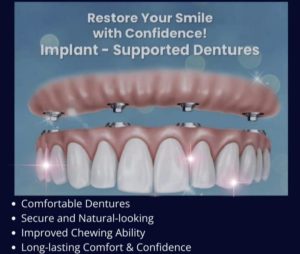Implant-supported dentures provide a permanent tooth replacement option for individuals missing their upper or lower teeth. This solution involves surgically placing 4-6 implants into the jawbone to create a stable foundation for attaching the dentures. Unlike traditional dentures, implant-supported dentures are securely fixed, allowing you to enjoy eating a wide range of foods confidently and comfortably.